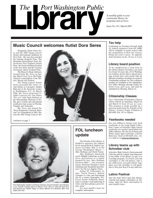 Music Council Welcomes Flutist Dora Seres Port Washington Public